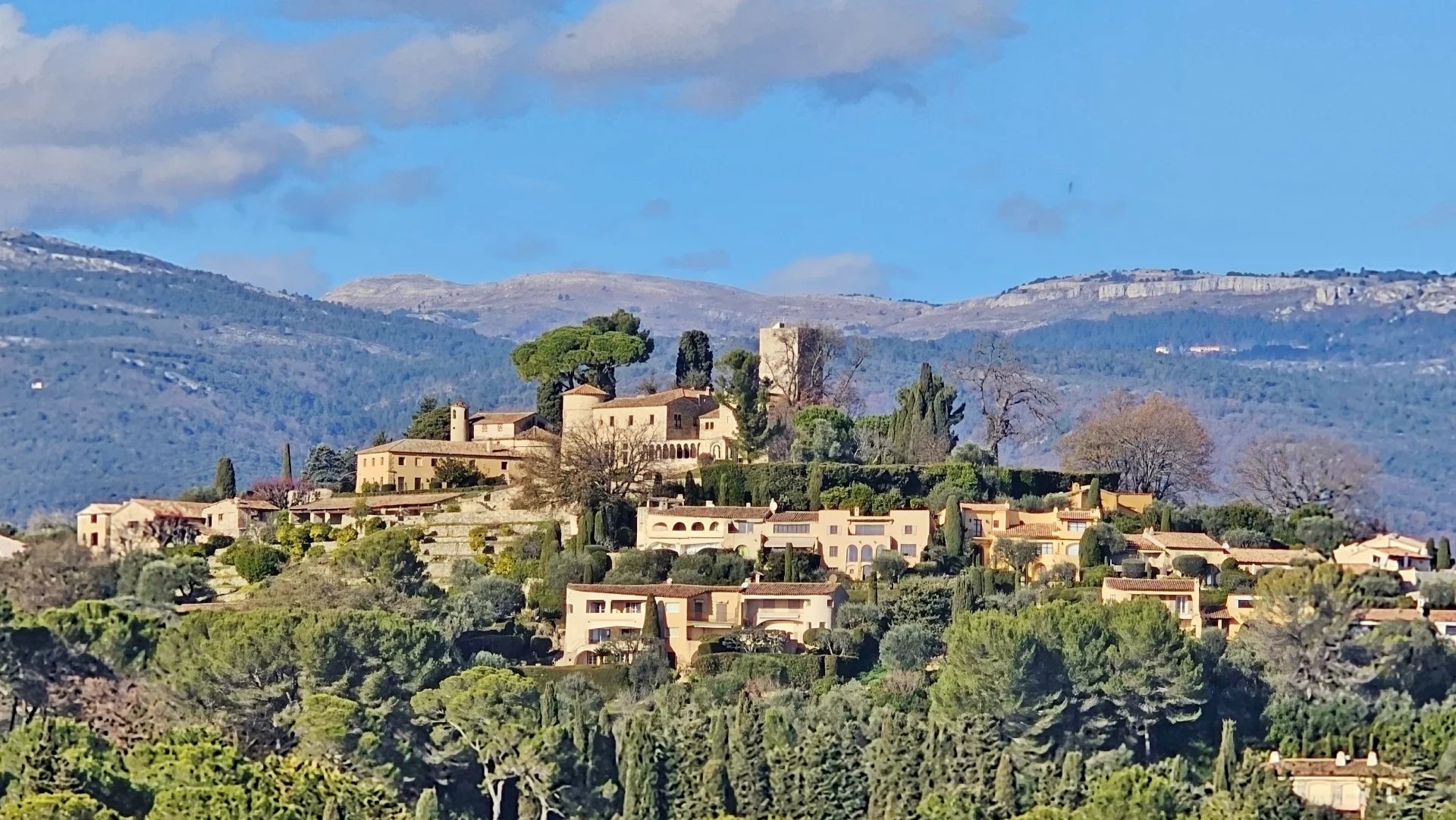 Enjoying views of the Château de Castellaras, the property comprises a main house with a large swimming pool, jacuzzi, pool house, an independent one-bedroom apartment (connected by an internal staircase), a double garage, as well as numerous parking spaces.