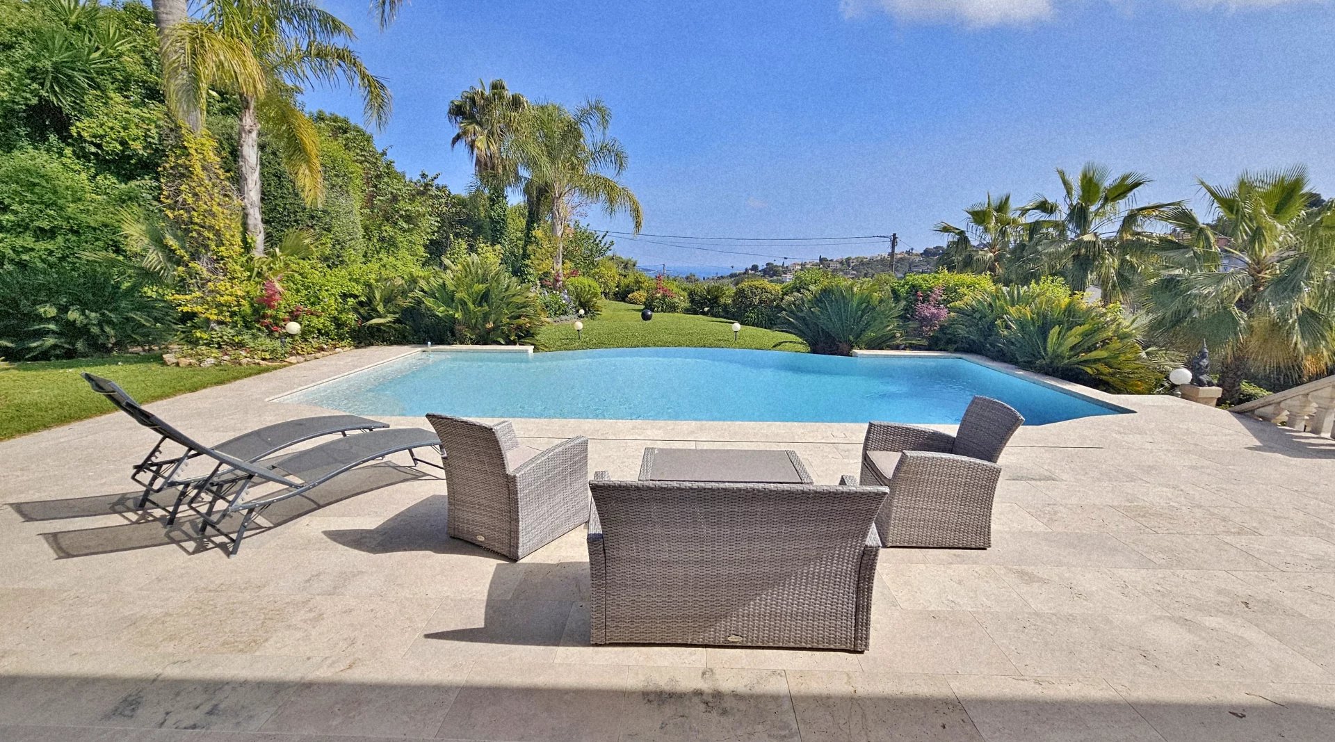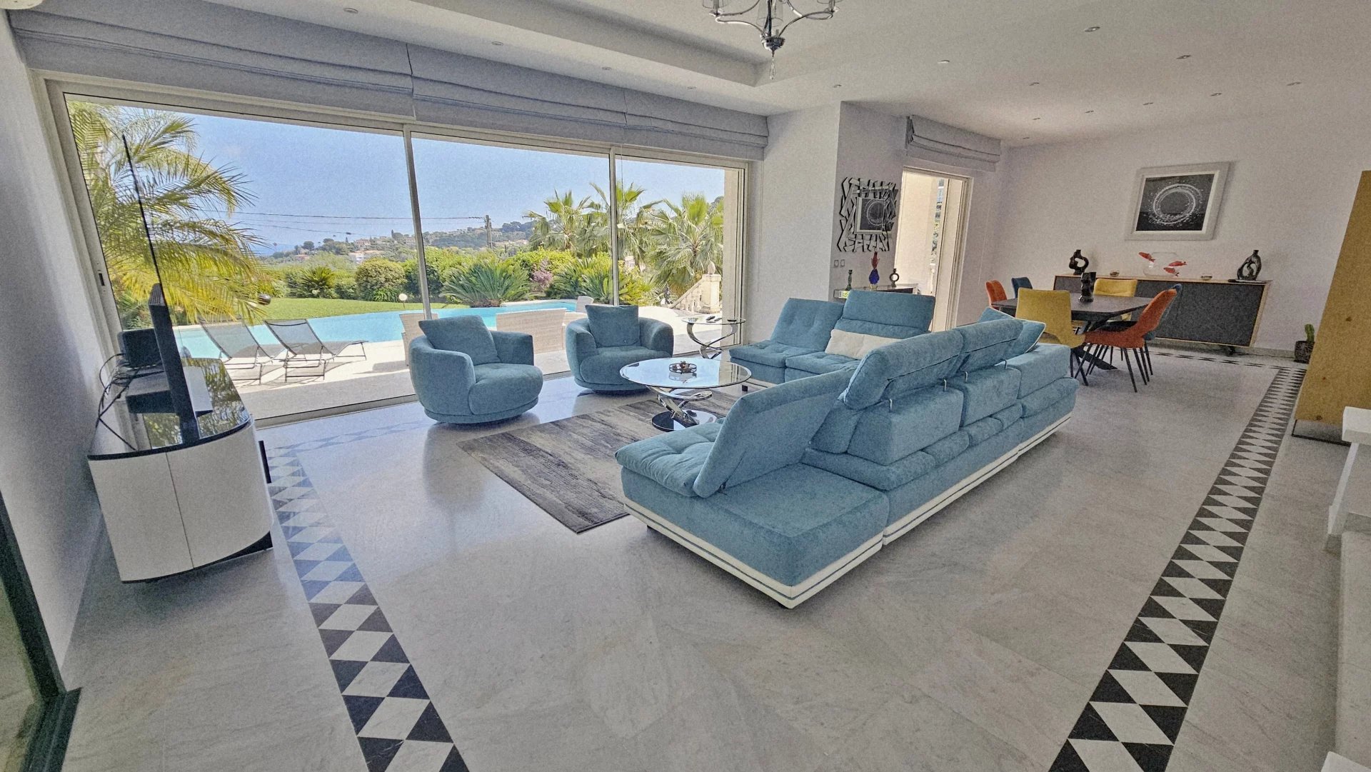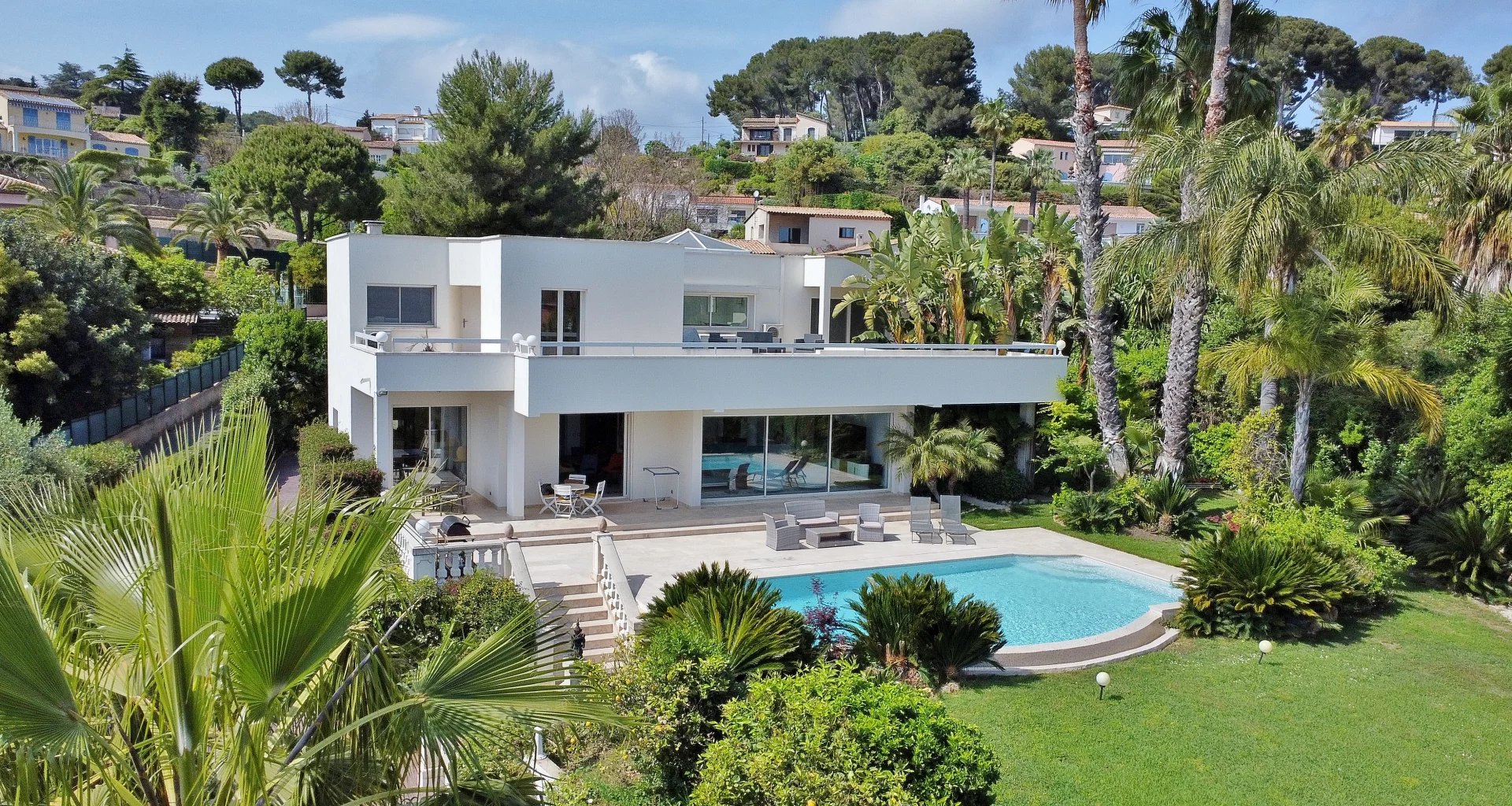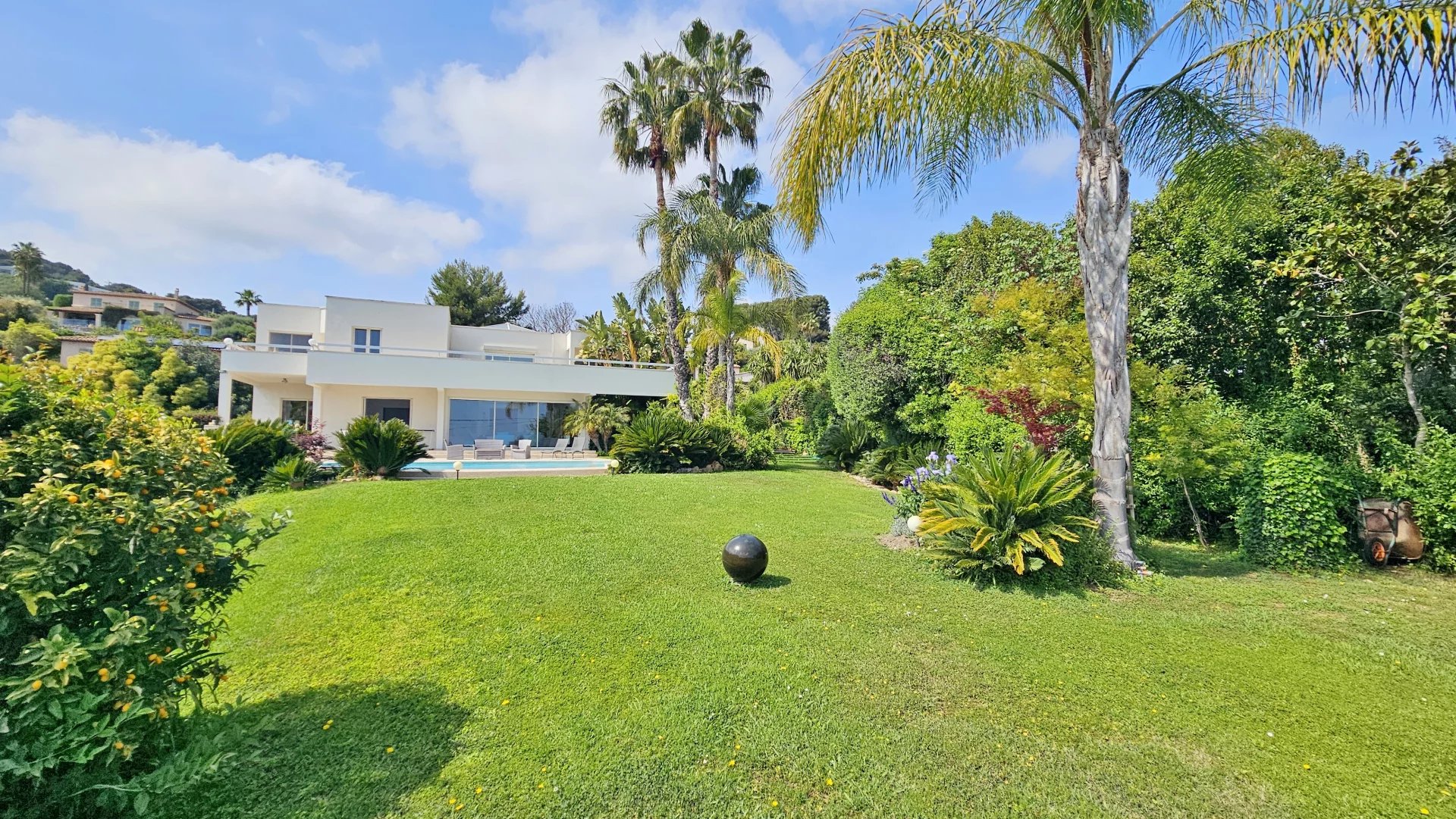 A Antibes, située dans un environnement résidentiel prisé, au calme, cette élégante villa contemporaine d’environ 230 m² bénéficie d’une très belle vue mer et d'un magnifique jardin paysager.